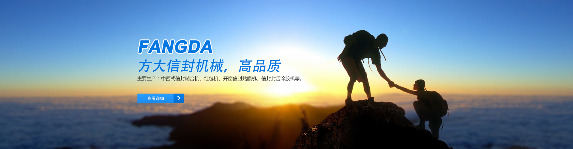 瑞安方大信封機(jī)械有限公司,是專業(yè)生產(chǎn)信封機(jī)糊合設(shè)備系列產(chǎn)品的企業(yè),主要產(chǎn)品有:中西式信封糊合機(jī)、紅包機(jī)、開窗信封貼膜機(jī)、信封封舌涂膠機(jī)等。實(shí)力來自規(guī)模,品質(zhì)源自專業(yè)。我廠擁有專業(yè)老練的工程設(shè)計(jì)人員,經(jīng)驗(yàn)豐富的生產(chǎn)安裝人員,嚴(yán)謹(jǐn)認(rèn)真的質(zhì)量檢驗(yàn)人員,從而保證了所生產(chǎn)機(jī)械的優(yōu)良品質(zhì)。此外,我廠也將從技術(shù)上、性能上不斷改進(jìn)提高,以更好的滿足客戶的需求。“客戶至上,服務(wù)為本”是我廠長(zhǎng)期一貫的服務(wù)理念,從安裝、測(cè)試、保養(yǎng)、維修等售后服務(wù),我們會(huì)給予客戶充足的信息資訊與技術(shù)支持,因此在業(yè)界獲得良好的口碑及信譽(yù),您的滿意是我們的榮耀!歡迎您來電查詢、來人參觀,我們一定能給你滿意的答復(fù)!秉承“顧客至上,銳意進(jìn)取”的經(jīng)營理念,堅(jiān)持“客戶為先”的原則為廣大客戶提供溫馨的服務(wù)。歡迎惠顧!